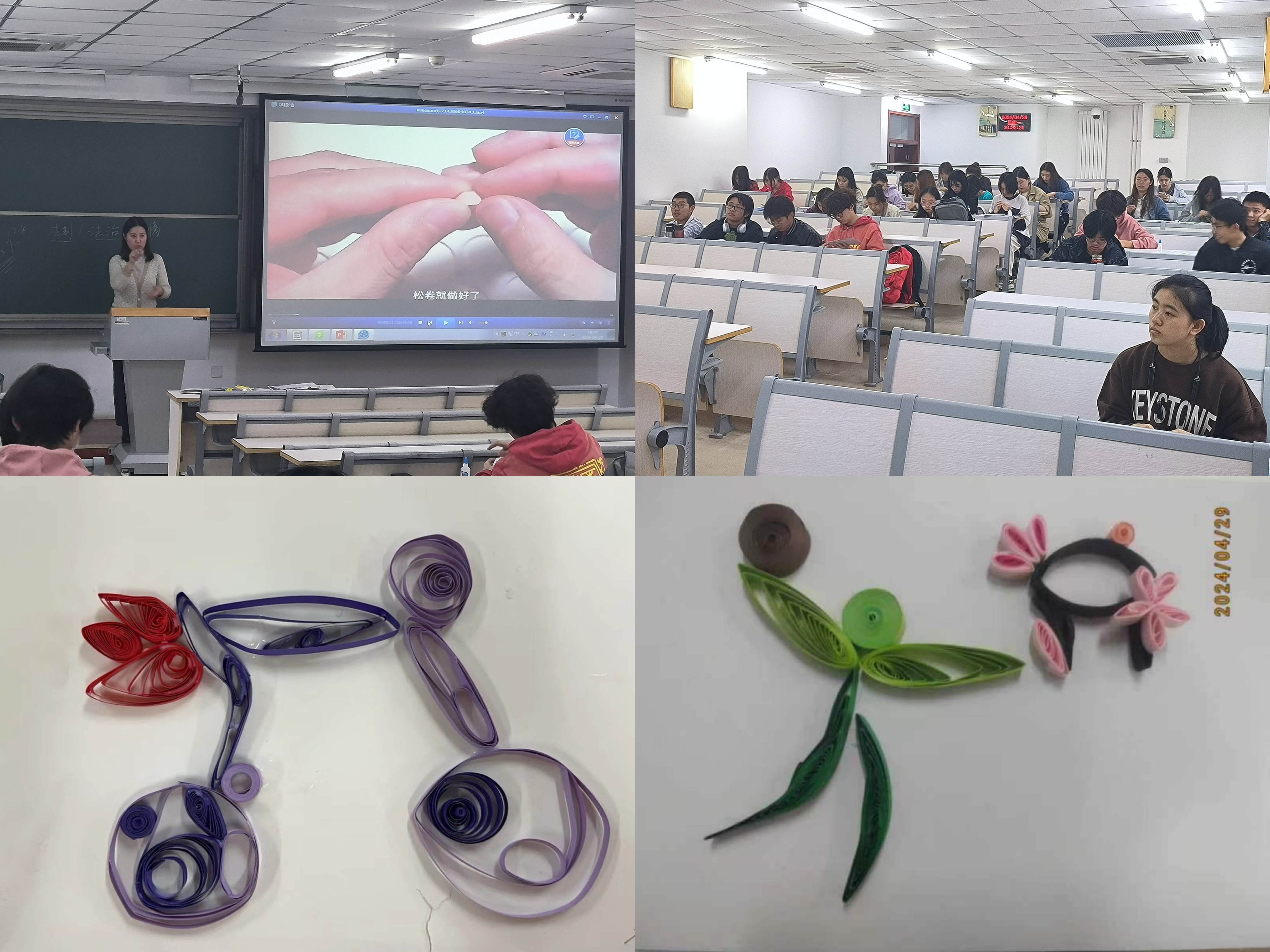 4月29日,为了丰富校园文化生活,营造浓厚的校园文化氛围,同时充分展现我国传统衍纸文化的艺术魅力,继承和弘扬传统的国粹文化艺术,新葡的京集团8814在本次心理活动月开展“岁月向荣,巧手生花”手工衍纸活动。本次活动面向新葡的京集团8814全体学生。特邀首都师范大学美术教育专业硕士,现为中国政法大学教师的陈天琪老师,以现场活动的形式展开。手工衍纸作为一种集艺术、创造与休闲于一体的活动,深受大家的喜爱。本次手工衍纸活动旨在为广大同学提供一个交流学习的平台,让大家在繁忙的学习生活中找到一片宁静的角落。