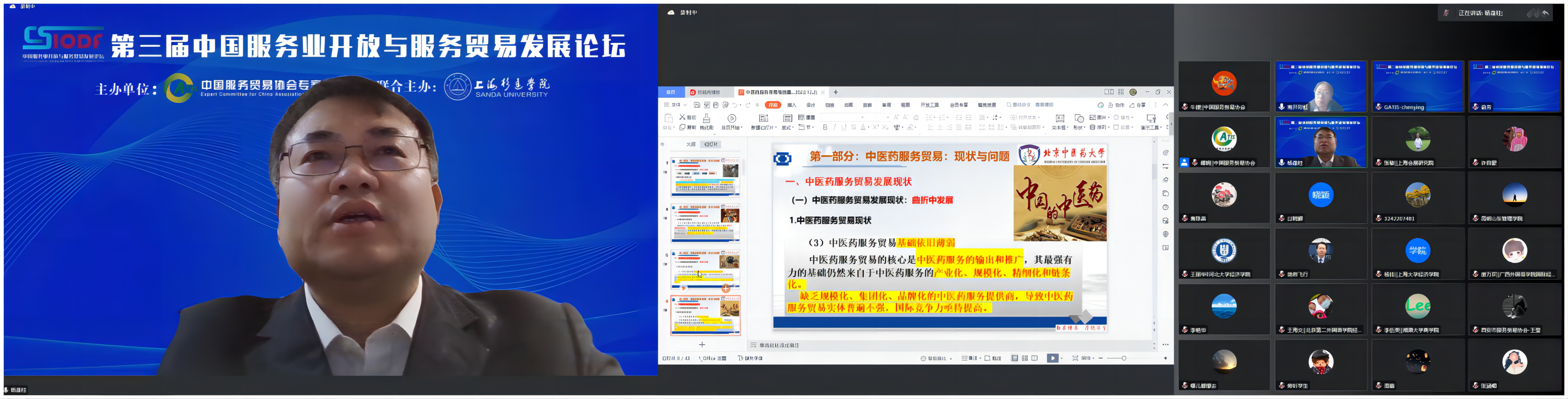 2022年12月2日,新葡的京官网法律系主任杨逢柱副教授应邀参加由中国服务贸易协会专家委员会主办第三届中国服务业开放与服务贸易发展线上论坛并做主体报告。来自中国科学院、国务院发展研究中心、国家发展和改革委员会对外经济研究所、商务部研究院国际服务贸易研究所、中国人民公安大学、中国政法大学、中央财经大学等30余家服务贸易研究单位的60余名专家参加了本次论坛。