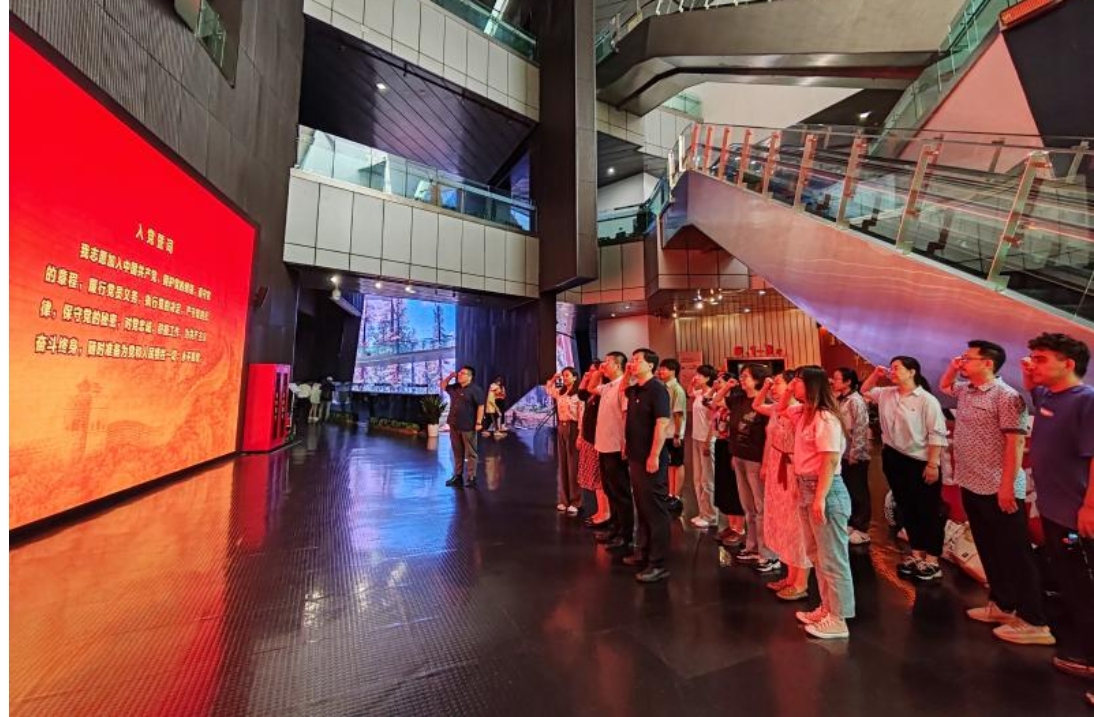 展厅参观结束后,新葡的京集团8814党委书记张小勇带领党员师生,面对鲜红的党旗,郑重地重温了入党誓词。铿锵有力的誓言回荡在展厅,不仅是一次心灵的洗礼,更是对每位党员责任与使命的再次唤醒。这一庄严仪式,让每一位参与者深切感受到了作为一名共产党员的光荣与责任,坚定了为共产主义奋斗终身的决心。
